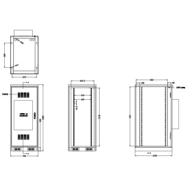 | Cooling Method | Air Conditioner | Cooling Capacity: 1500W Power Supply: 220VAC, 50Hz On front door |