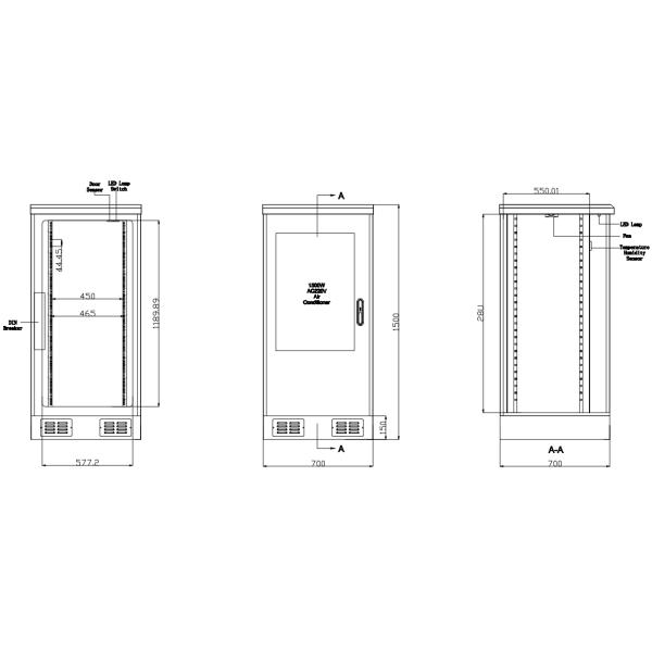 | 1 | Outdoor Cabinet | (1) External Dimension: W×D×H 700×700×1500m (4) Material: galvanized steel, double wall with heat insulation (5) IP grade: IP55 (6) Outdoor anti-corrosion powder coating (7) Including grounding bar (8) Installation method: floor mount | 1 | SET |